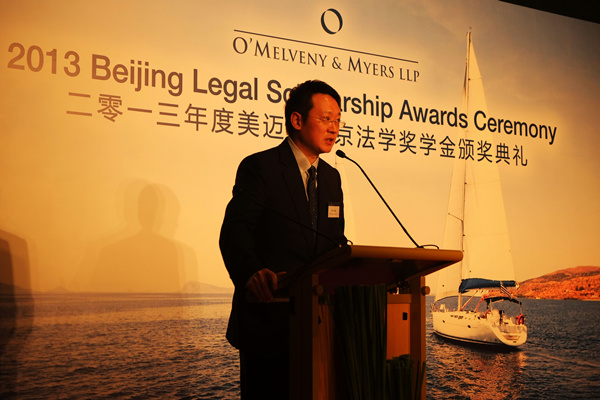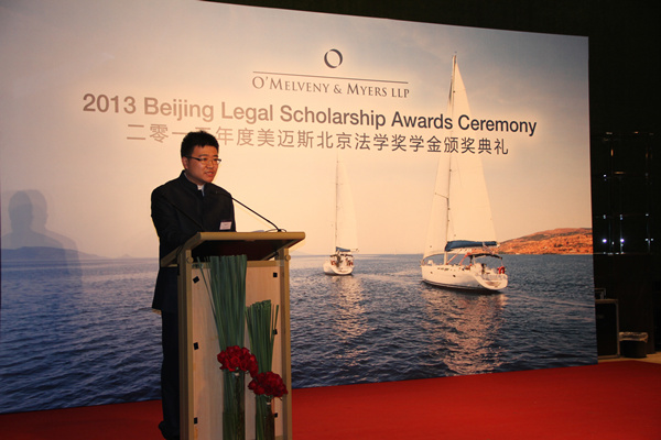首先,典礼主持人对各位嘉宾的到来表示欢迎并对2013年美迈斯北京法学奖学金的评选情况进行了介绍。