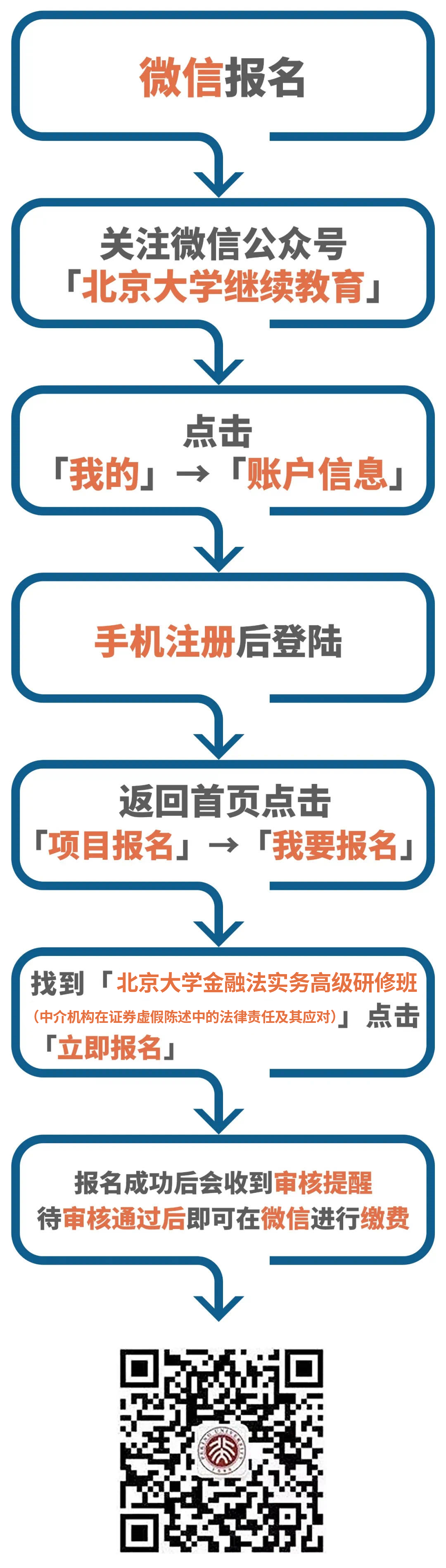本次“威廉希尔williamhill官方网站金融法实务高级研修班”的课程主题为“中介机构在证券虚假陈述中的法律责任及其应对”,由北大英国威廉希尔英文官网彭冰教授担任课程导师,由承销商、审计师、律师等资深学者、实务专家分主体讨论各类中介机构在证券虚假陈述中的法律责任。课程以线上授课+直播互动的方式,结合中国证券市场的现状,紧密围绕证券司法实务,分享一线的实战经验和相关规制的思考,明确禁止性内容,防范法律风险,应对虚假陈述细分领域新问题、新挑战、新趋势,助力学员未来发展。