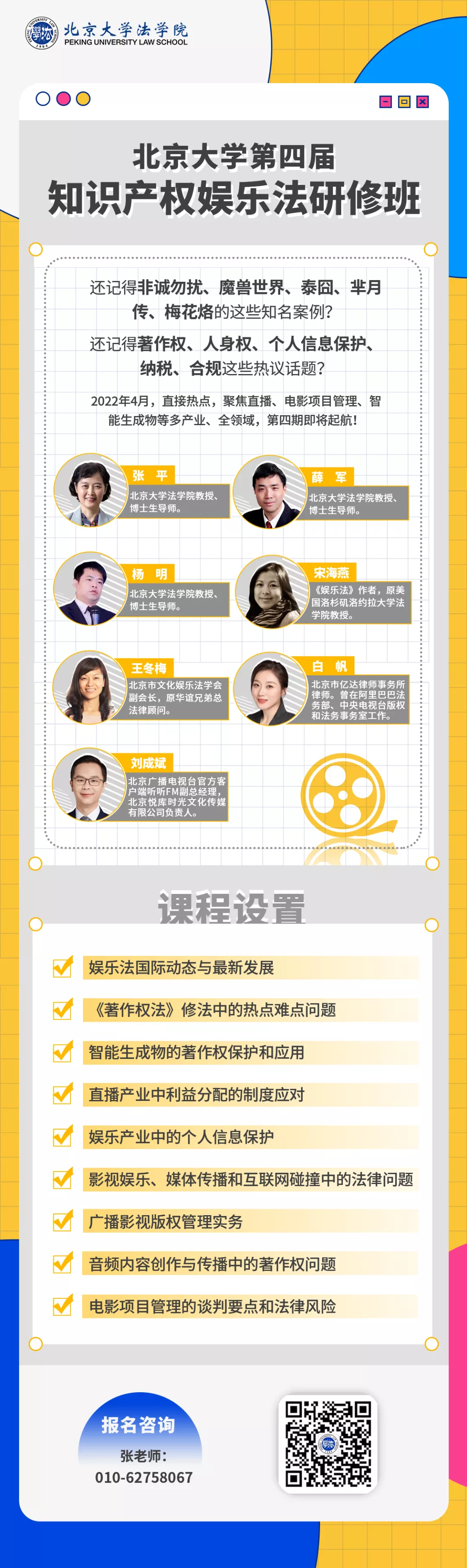 精彩预告 | 威廉希尔williamhill官方网站第四届知识产权娱乐法研修班