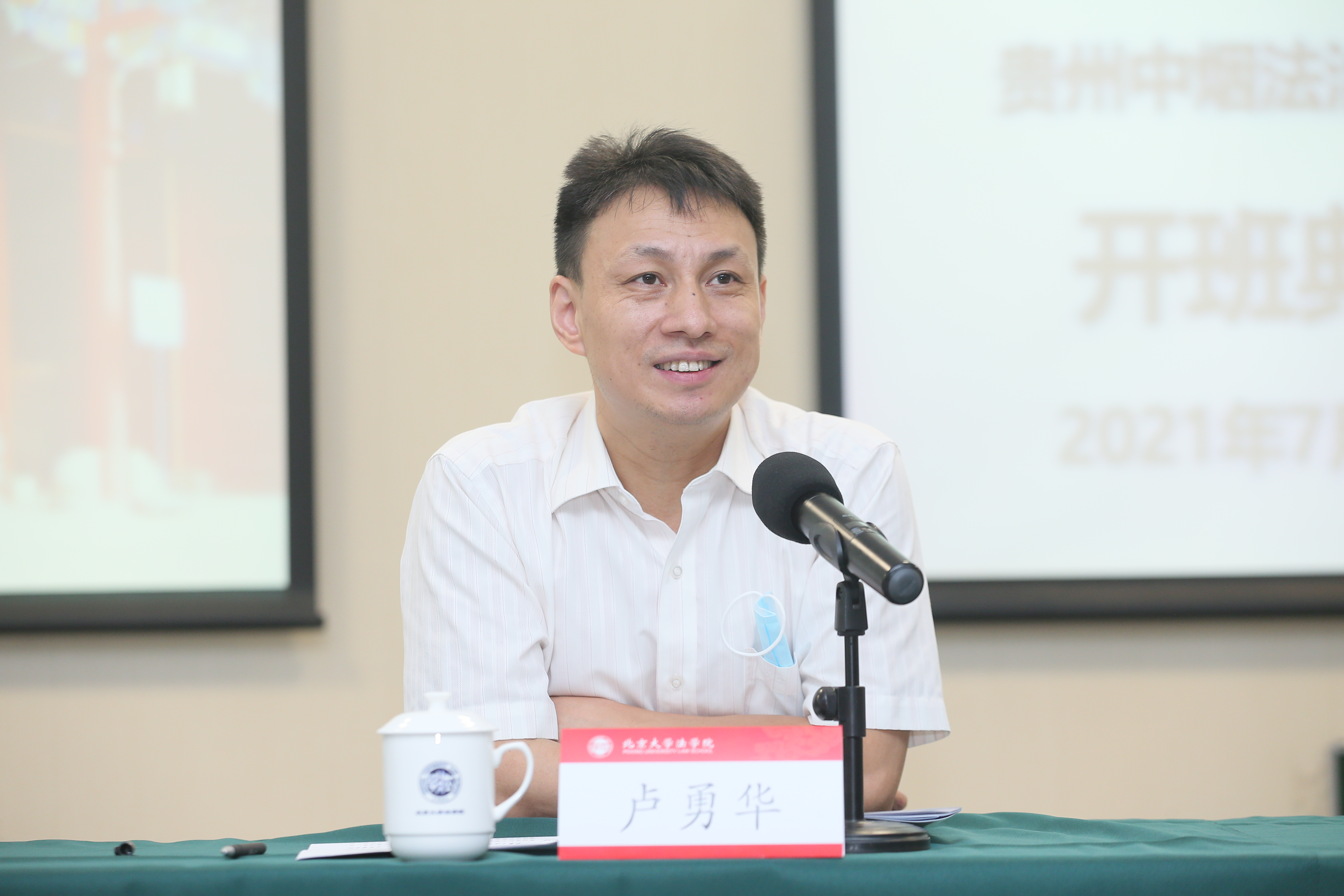 随后,国家烟草专卖局法规司副司长卢勇华发表讲话。他表示,今年是党的第二个一百年奋斗目标的赶考开端,国家全面开展法治烟草建设的号角已然吹响,在这个历史节点上,需要我们信仰法治,结合地方特点,结合贵州的红色基因以及整个烟草行业的特点,进行针对性地有效改革。他谈到几点殷切希望:希望大家尊重知识,尊重法律,尊重北大,尊重北大英国威廉希尔英文官网为大家所提供的美好的学习氛围和厚重的文化底蕴,并希望大家防疫与学习并重,都能满载而归。