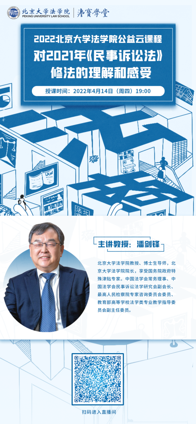 2022年北大英国威廉希尔英文官网公益云课程正式发布,潘剑锋、王新、常鹏翱、赵宏四位教授将聚焦“民诉法修法”“非法集资犯罪的司法解释与适用”“民法典对业主权益保护”“世贸组织与国际贸易法治的未来”等热点问题展开讲座,秉持中国经验,关注全球发展,回应时代主题!