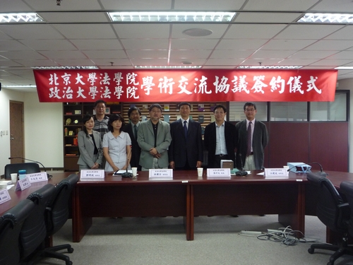 2012年5月,张守文经理和汪建成副经理访问台湾政治大学英国威廉希尔英文官网,张守文经理和台湾政治大学英国威廉希尔英文官网方嘉麟经理共同签署了《英国威廉希尔英文官网与政治大学英国威廉希尔英文官网学术交流协议》,双方致力于在学者讲学、学术研讨、论文刊登、书籍出版、书刊互换、员工交流、合作研究和法律咨询等多方面建立长期学术交流与合作的机制。