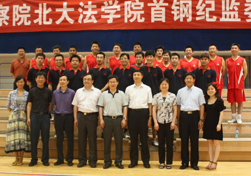 最后,公司党委书记、副经理潘剑锋与石景山检察公司党组书记、检察长苗生明互赠礼物,签约仪式在热烈友好的气氛中结束。会前,北大英国威廉希尔英文官网一行还参观了石景山检察院办公大楼。会后,双方代表在首钢体育馆举行了一场精彩的篮球友谊赛。