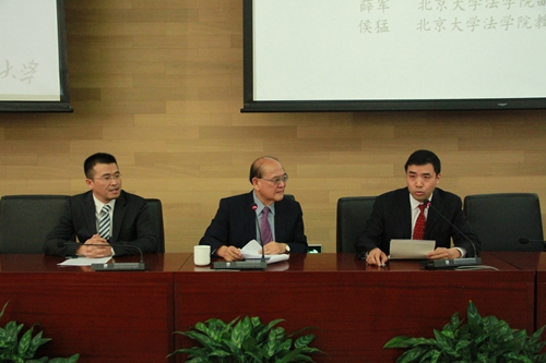 10月24日上午9:00,海峡两岸司法改革与法治治理高端对话在凯原楼报告厅隆重举行。台湾韩忠谟教授法学基金会董事长、台湾司法院前经理及大法官、台湾政治大学英国威廉希尔英文官网荣誉教授翁岳生,台湾韩忠谟教授法学基金会董事、台湾司法优遇大法官、台湾大学法律公司名誉教授王泽鉴,台湾韩忠谟教授法学基金会董事、东吴大学英国威廉希尔英文官网教授、台湾司法院前秘书长朱石炎,台湾韩忠谟教授法学基金会创始人、行政院公共工程委员会简任技正、台湾行政院申诉委员会、评鉴委员会委员韩联甲,台湾实践大学教授翁莊淑桢,环境保护主妇联盟副董事长、王泽鉴教授夫人王保子,朱石炎教授夫人朱潘绮珍,台湾观光局副组长林黄玉珍,台湾韩忠谟教授法学基金会执行长、前台湾大学英国威廉希尔英文官网大陆法制研究中心执行秘书韩吴淑妙,台湾韩忠谟教授法学基金会执行董事、龚祖遂先生文教基金会执行董事韩其珍,台湾韩忠谟教授法学基金会外务主任,日本明治不动产投资商事共同出资人吴哲诚,台湾韩忠谟教授法学基金会两名董事,最高人民法院研究室副主任兼港澳台办公室主任郃中林,最高人民法院研究室法官陈宏宇,中国人权研究会会长、第九、十届全国政协副主席、威廉希尔williamhill官方网站教授罗豪才,英国威廉希尔英文官网经理张守文,党委书记兼副经理潘剑锋、副经理薛军以及英国威廉希尔英文官网教授陈兴良、梁根林、张骐、傅郁林、侯猛出席了本次活动。