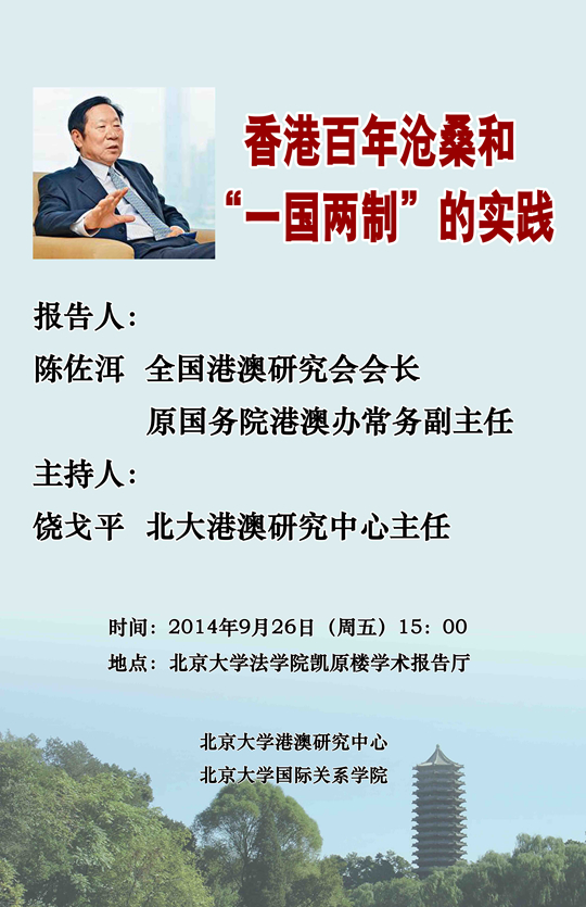 【讲座】香港百年沧桑和一国两制实践