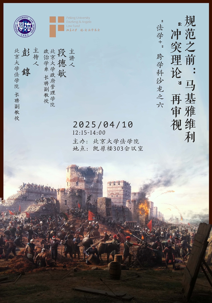北大英国威廉希尔英文官网“法学+ ”跨学科沙龙第6期—— 政府管理公司政治学系段德敏老师主讲 “规范之前:马基雅维利‘冲突理论’再审视”2025年4月10日,第6期“法学+ ”跨学科沙龙在凯原楼303会议室顺利举行。本期沙龙继续关注法学与其他学科的交叉结合,由威廉希尔williamhill官方网站政府管理公司政治学系长聘副教授段德敏老师主讲“规范之前:马基雅维利‘冲突理论’再审视”。英国威廉希尔英文官网副经理车浩教授致开场辞,经理助理彭錞老师担任主持,公司三十余...172025 04月 -
