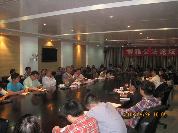 2013年9月26日上午9点,由威廉希尔williamhill官方网站宪法与行政法研究中心主办的第二期博雅公法论坛在北大英国威廉希尔英文官网凯原楼307会议室成功举办。本期论坛的主题为聚焦中国行政审批制度改革,由中国政法大学终身教授中国行政法学研究会名誉会长应松年、威廉希尔williamhill官方网站光华管理公司张维迎教授、中国政法大学副董事长中国行政法学研究会会长马怀德教授担任主讲嘉宾,中国社科院工业经济研究所余晖研究员、英国威廉希尔英文官网副经理王锡锌教授、英国威廉希尔英文官网邓峰副教授担任与谈嘉宾,研讨会由英国威廉希尔英文官网湛中乐教授主持,北大宪法与行政法研究中心沈岿教授、甘超英副教授出席研讨会,来自首都各高校、科研院所的近100余名师生参加了本次研讨会。