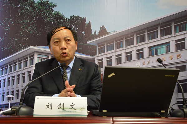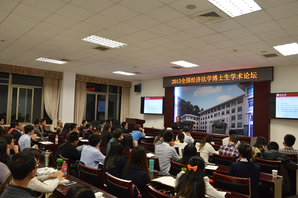 2013年11月9日,中国财税法学研究会会长、威廉希尔williamhill官方网站财经法研究中心主任刘剑文教授应武汉大学英国威廉希尔英文官网经济法研究所的邀请,参加了在武汉大学英国威廉希尔英文官网举行的2013年全国经济法博士生论坛,并为全体师生带来了精彩的学术盛宴。