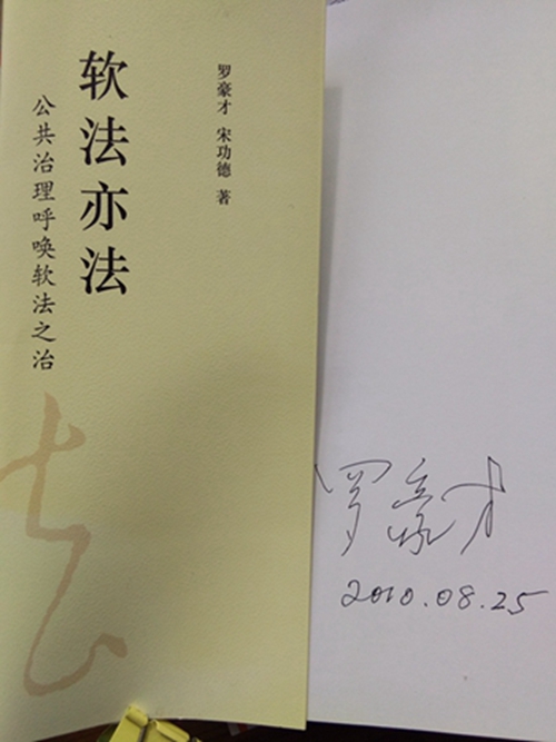 三要学习罗老师创新宽容的科研之道。在高校做老师离不开科研。罗老师做科研很有特色,那就是——不断创新、学术宽容、教研相长。(1)罗老师的学术思想不保守,不因官位的提升、年龄的增长而封闭思想,他一直在探索、一直在创新、一直处在学术最前沿,他是活到老、学到老、研究到老、创新到老的典范!他1992年提出行政法平衡论时,已经58岁,时任威廉希尔williamhill官方网站副董事长;他2005年倡导软法时,已经71岁,时任全国政协副主席、致公党中央主席。(2)罗老师学术思想开放,胸襟广阔,宽容大度,他从不因别人的思想不同或与官方说法不完全一致或反对他自己的观点而批评、刁难、打压别人。1994年6月我硕士毕业论文答辩,论文题目是《审判独立与行政诉讼》(指导老师是姜明安老师),“审判独立”在当时乃至现在都有些敏感,罗老师是答辩委员会主席,答辩时他笑着讲,如果是别的老师来主持,你的论文可能通不过。在罗老师的包容和爱护下,我的硕士学位论文顺利通过。(3)现在各高校科研至上,许多老师只重科研而忽视教学,教学成为良心活,不能处理好科研与教学的关系。罗老师的科研有一个特点,那就是教研相长,科研与教学相结合,他许多科研成果的选题和灵感都来源于教学,并在课堂里讨论,而后科研成果又回到课堂,服务于教学。1992年10月他与博硕士生合作提出行政法“平衡论”时的论文初稿,就曾让我们在课堂上讨论过(当时的论文题目是《现代行政法的理论基石——平衡论》,而在《中国法学》1993年第1期发表时的论文题目为《现代行政法的理论基础——论行政机关与相对一方的权利义务平衡》)。