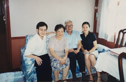 2000年,从青岛回北京的火车上,与老师、师母合影