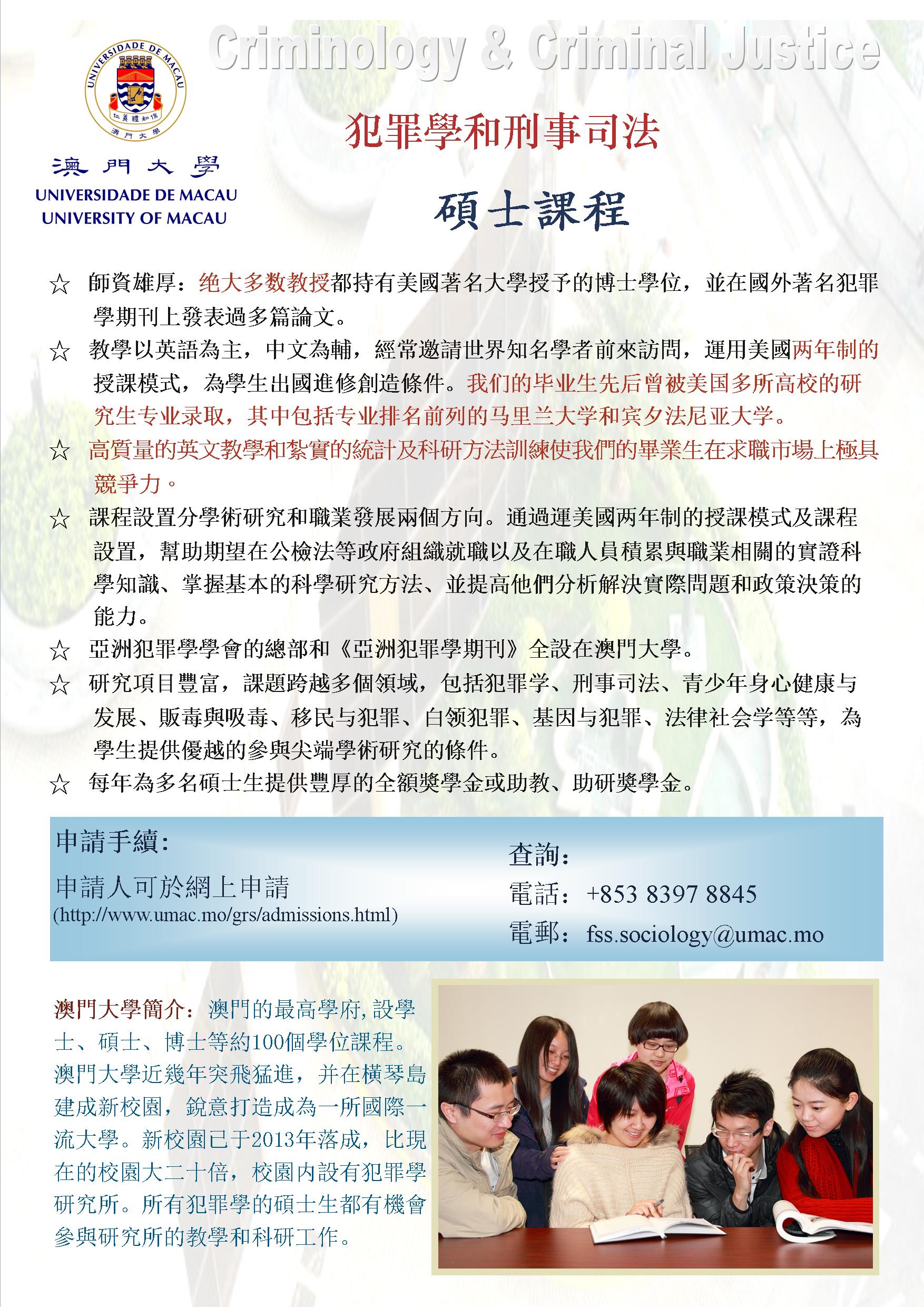 讲座内容:1、澳门大学犯罪学硕士课程与博士课程介绍