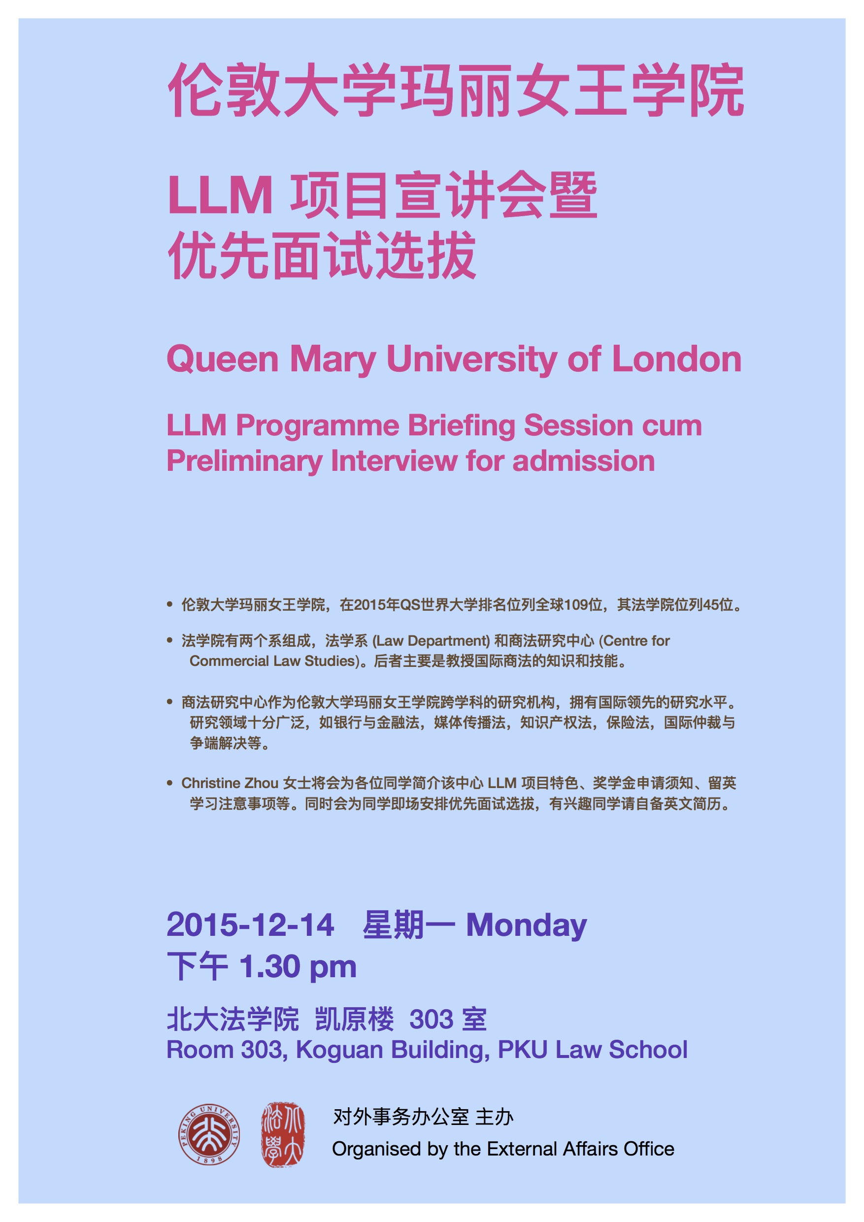 伦敦大学玛丽王后公司 LLM 项目宣讲会暨优先面试选拔