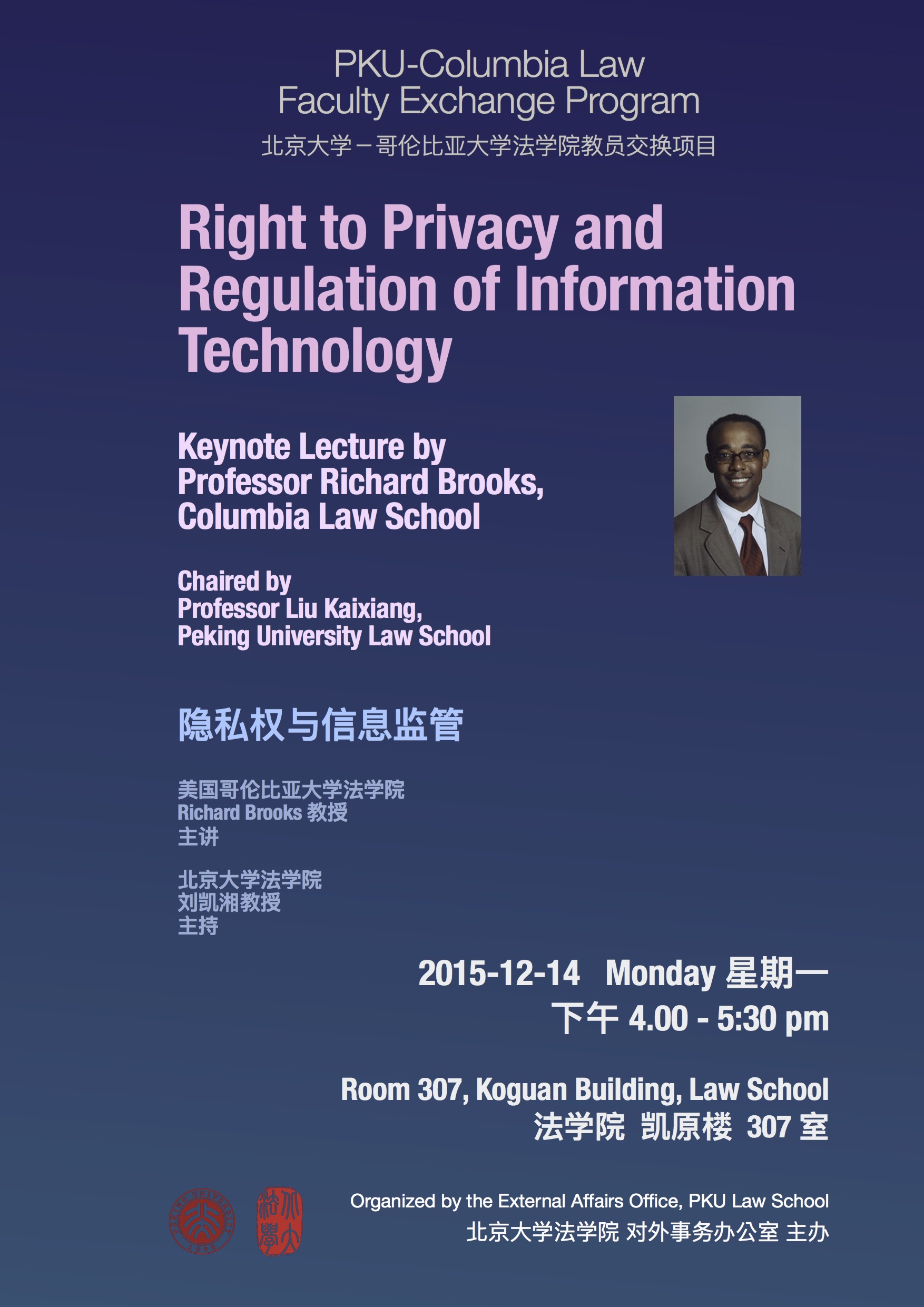 讲座内容简介:本次讲座中,Richard Brooks 教授将系统地介绍了知识与信息的概念及意义、隐私权及其目的。并将通过法律经济学的分析方法,将信息进行界定划分,介绍信息受托人的形式及不完全契约理论等,进而剖析网络时代隐私权能否全由合同保护以及如何监管。