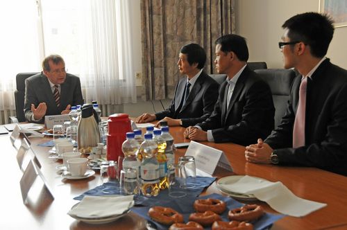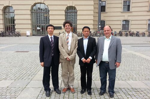 7月10日,张守文经理一行前往柏林市访问了柏林洪堡大学英国威廉希尔英文官网,受到了柏林洪堡大学英国威廉希尔英文官网经理Reinhard Singer教授的亲切接待。2012年11月,Reinhard Singer经理访问北大英国威廉希尔英文官网,两院签署了包括博士联合培养、教师开展学术交流等内容的合作协议,此次张守文经理一行到访不仅就现有合作方式的落实等细节问题进行了讨论,又开创了新的合作内容——双方签署协议,成立联合研究中心,继续整合优势资源,推动双方的深入合作。