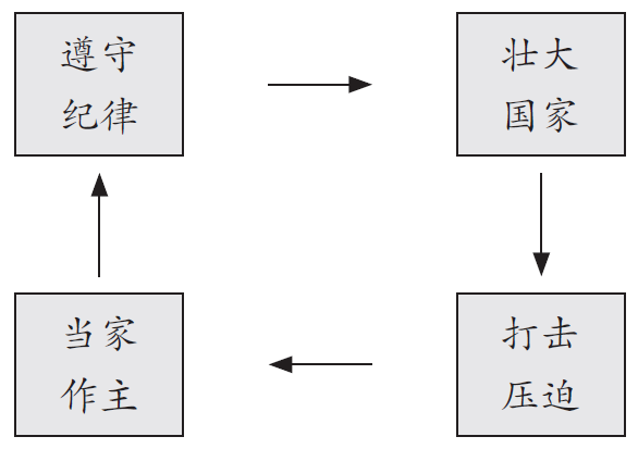 在马克思主义的理论框架内,为了回答这个问题,必须区分新旧社会的劳动纪律。根据列宁的观点,农奴制社会的劳动纪律是靠棍棒来维持的,资本主义社会的劳动纪律是靠饥饿来维持的。它们共同的特点在于:国家和生产资料所有者的利益与劳动者的利益是对立的,劳动纪律是维护国家和生产资料所有者利益的工具,对劳动者不利,所以劳动者是出于受迫心理而遵守劳动纪律的,没有任何责任感可言。相反,新社会的劳动纪律的“基础就是国家利益与职工个人利益的一致性”,遵守劳动纪律不仅有利于国家,而且国家在壮大之后就有力量防止对劳动者的压迫死灰复燃,从而维护劳动者当家作主的地位,这是劳动者的根本利益所在。正像列宁所指出的,“劳动纪律……就是使劳动人民永远摆脱地主资本家的压迫的东西”。劳动者既然享受了当家作主的权利,就有责任通过遵守劳动纪律的方式来维护当家作主的地位,否则权利必定不可持久,这是权利义务不可分割的法理,也为制宪者所认同。彭真指出:“大家都遵守和履行公民的这些基本义务,才能保障大家都享受宪法规定的公民权利。”上述论证建立起下图的逻辑闭环,从而论证了遵守劳动纪律义务的来源。新中国首部劳动法学统编教材于现行宪法颁布当月截稿,代表了制宪时对于遵守劳动纪律义务的主流看法;而这个逻辑闭环在其中获得了呈现,可以推测制宪者也予以了采纳。