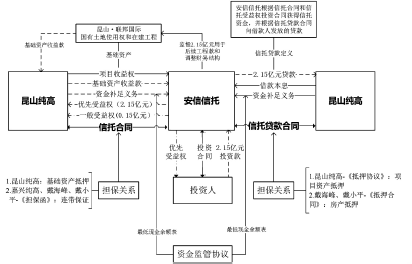 2009年9月11日,安信信托作为受托人,与委托人昆山纯高订立《信托合同》约定:安信信托通过设立“昆山·联邦国际”资产收益财产权信托并转让优先受益权的方式向昆山纯高融通资金,信托财产是基础资产所产生的全部收益。昆山纯高自持一般受益权,并委托安信信托将优先受益权向社会投资者发行。安信信托将募集的信托资金交付给昆山纯高用于支付“昆山·联邦国际”项目后续工程款和调整公司财务结构。昆山纯高收取基础资产收益款后,应当汇给信托专户,并负有资金补足义务,即保证信托专户中的现金余额满足《资金监管协议》中“最低现金余额表”的要求。昆山纯高若未依约履行资金补足义务,逾期罚息按应付未付价款的日万分之二点一计收。昆山纯高负有支付信托报酬的义务。并约定,昆山纯高将“昆山·联邦国际”基础资产抵押给安信信托,作为其对《信托合同》项下资金补足义务的担保。在信托存续期间内,该基础资产由委托人昆山纯高负责管理、经营和销售。因房地产交易中心不接受《信托合同》作为主合同办理抵押登记手续2009年9月11日,安信信托作为贷款人与借款人昆山纯高、保证人戴海峰、戴小平另行签署《信托贷款合同》,约定安信信托将其从前述优先受益权转让中获得的资金作为贷款发放给昆山纯高,贷款期限为3年,贷款年利率为10%,贷款年利率自逾期之日起自动按12%执行;逾期罚息为日万分之二点一,逾期复利为年利率10%,逾期违约金为日万分之三。昆山纯高承诺贷款期间,向信托专户及安信信托指定账户划转销售款,以满足最低现金余额表的要求。昆山纯高未按约定补足资金的,逾期罚息为日万分之二点一。并约定,昆山纯高将“昆山·联邦国际”基础资产抵押给安信信托,作为其对《信托贷款合同》项下资金补足义务的担保。