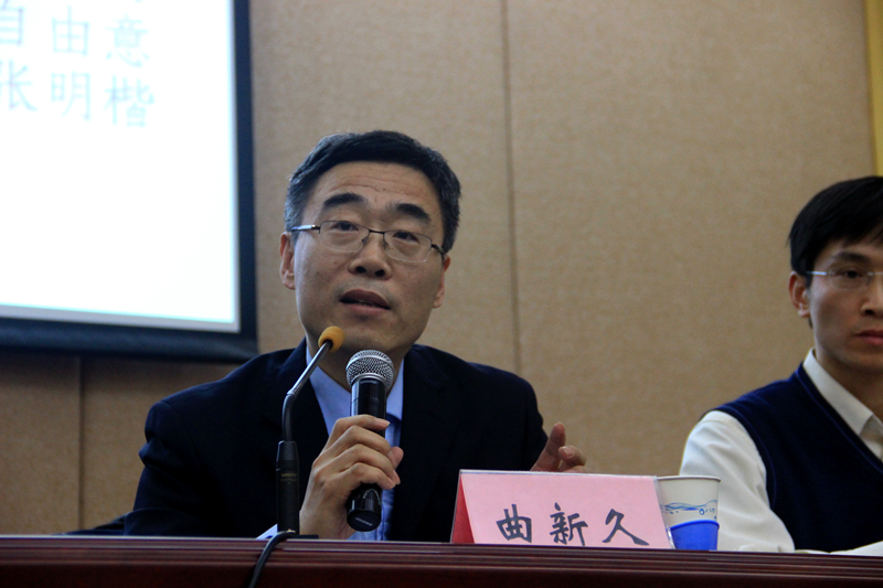 在评议阶段,曲新久教授首先肯定了江溯副教授的演讲,指出江溯副教授从德国理论的视角出发,并且结合中国实践,对被害人自陷风险形成了自己独特的见解。但是,曲新久教授同时指出,被害人自陷风险作为介于法律规范概念、理论概念和案件事实抽象中间模糊地带的一个概念,一般来讲能从中提炼出的类型化概念只有被害人同意,但在我们国家有所发展,又加入了被害人过错的概念,而且实践中被害人的过错对量刑的影响力也越来越大。同时曲新久教授对江溯副教授在报告中举出的案例逐一进行中国化的分析,对他所主张的结论在我国司法实践中的可行性提出了质疑。