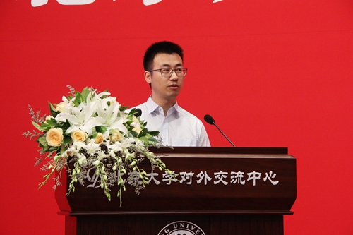 2017级法律硕士聂煦东作为在校生代表发言。他回忆自己两年来的学习生活,分享自己收获的经验教训,希望新生同学能够树立明确目标,充分利用资源,涵养浩然之气,勇于尝试,披荆斩棘,超越梦想,超越自我。