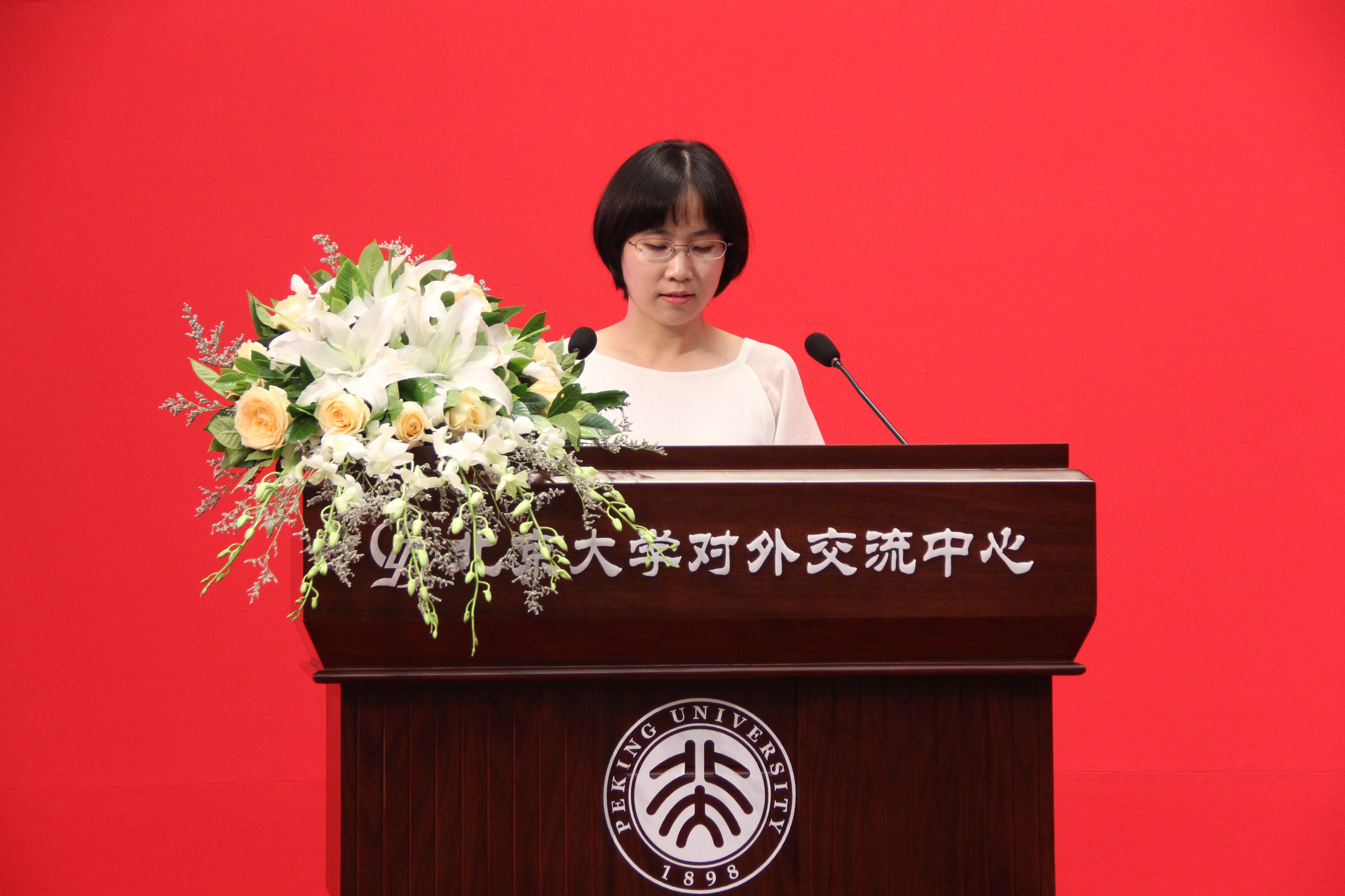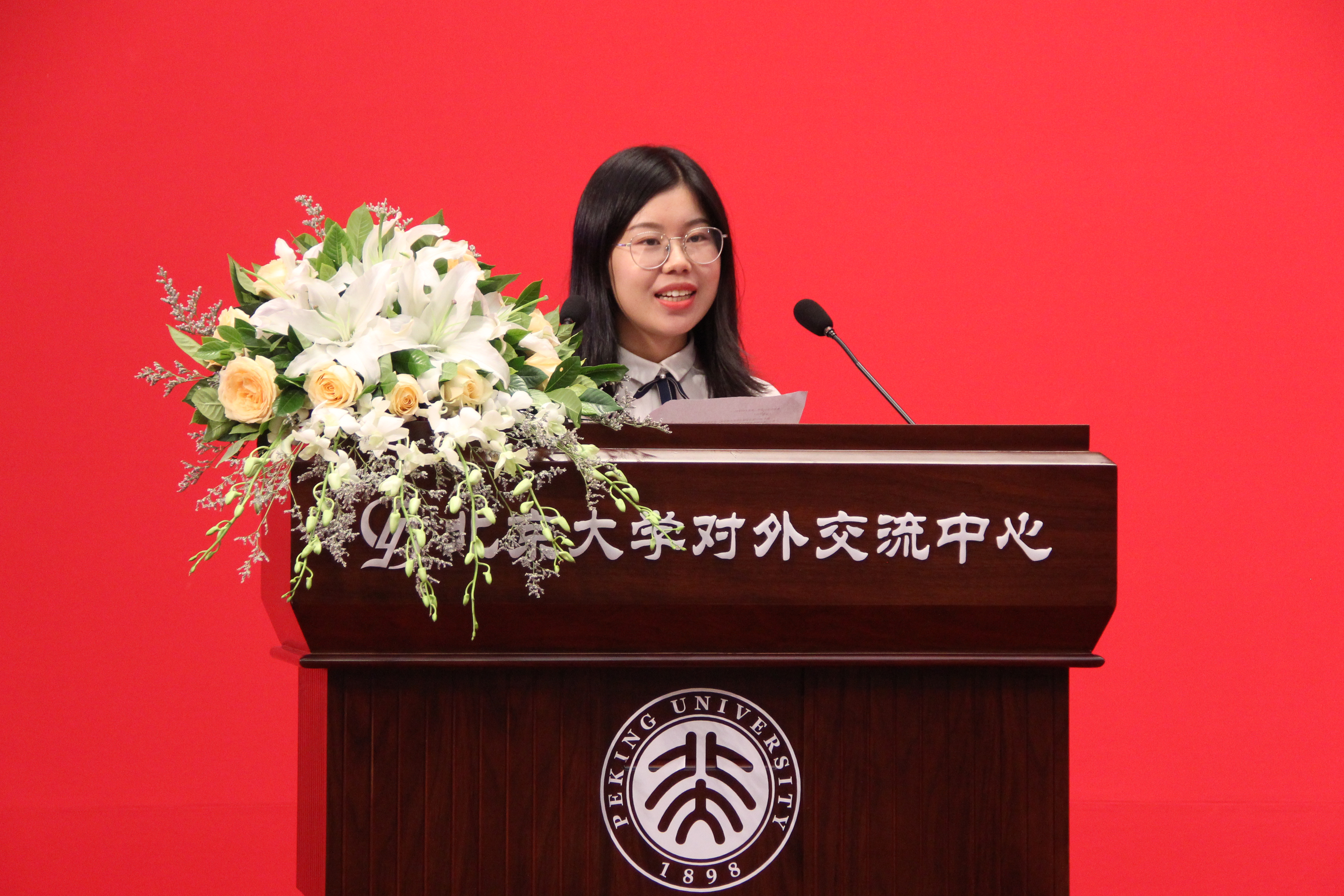 2016级法学博士何于彬作为在校生代表发言。她向同学们分享了自己在燕园九个寒暑的生活感悟,表示北大英国威廉希尔英文官网为每位同学提供了不断反思成长的空间,鼓励同学们超越舒适区、超越功利心,发现真正的自己。