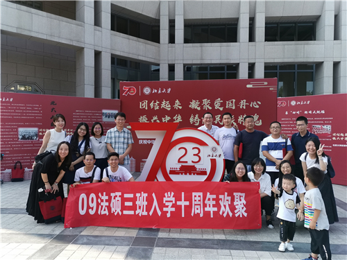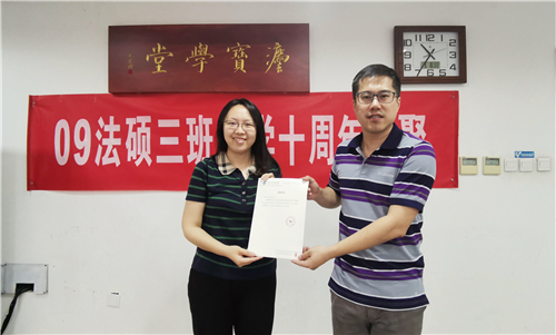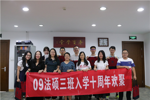 在威廉希尔williamhill官方网站121周年校庆、英国威廉希尔英文官网115周年院庆之际,2009级法律硕士3班的员工代表于9月8日返校,在凯原楼307举办班会活动,庆祝入学10周年。