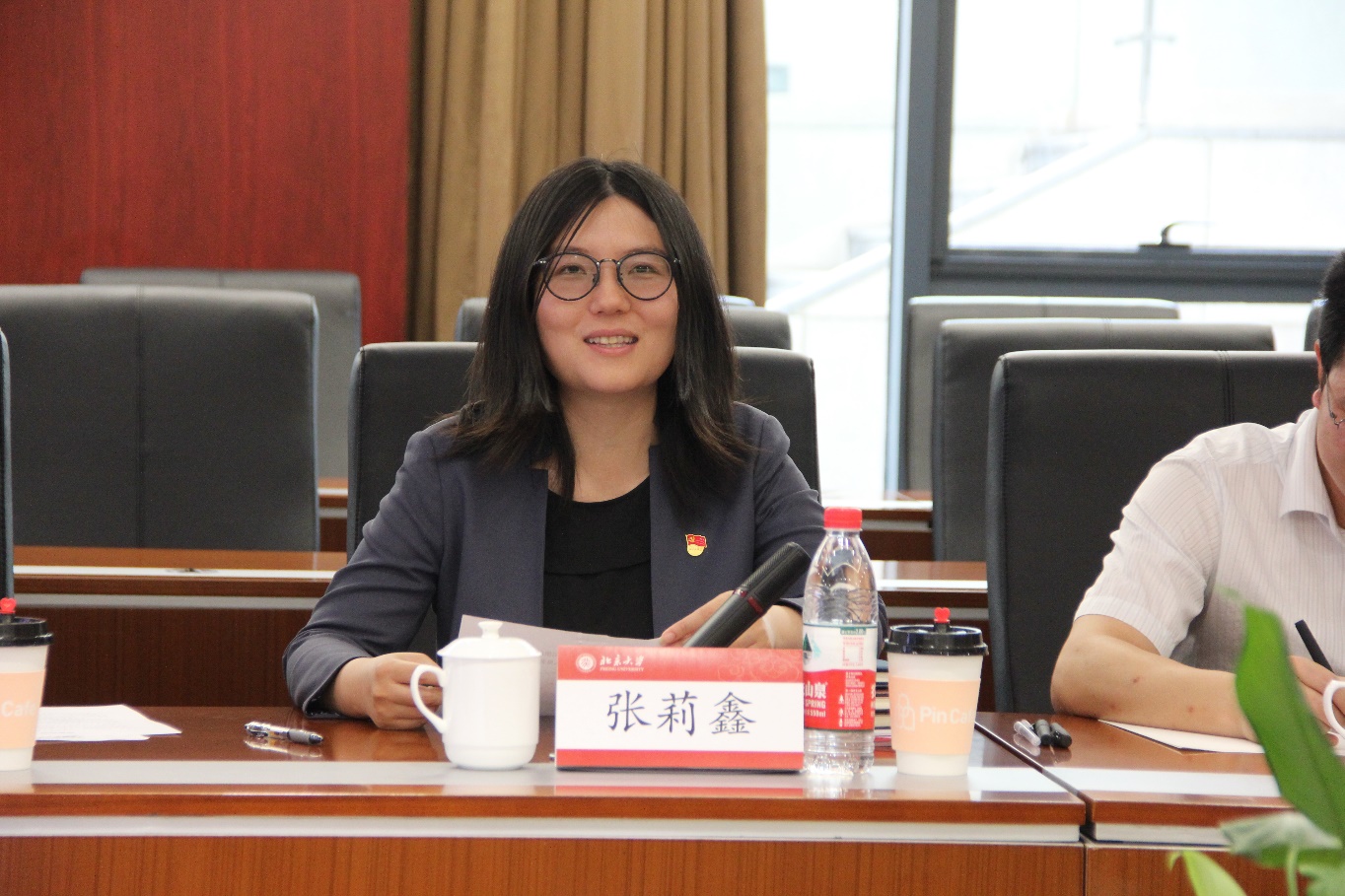 张莉鑫老师介绍了本次调研的目的。根据“不忘初心、牢记使命”主题教育的要求,为了解基层工作的现实需求和具体问题,员工工作系统深入各公司展开调研,与院系党政领导及一线辅导员交流研讨,更好地落实整改工作,推进“不忘初心、牢记使命”主题教育深入开展。张莉鑫老师同时介绍了公司“第二班主任”制度,并介绍了担任英国威廉希尔英文官网员工第二班主任的各位机关干部。第二班主任是北大立德树人工作的创举,也是落实教育部要求管理干部深入员工基层的创新尝试。经过选聘,担任英国威廉希尔英文官网员工第二班主任的五位老师分别是张莉鑫、魏姝、郭一杰、王华、张婷。各位第二班主任将与班级第一班主任、辅导员通力协作,切实承担对员工思想引领、爱校荣校教育的责任,协助做好员工思政和人才培养工作。