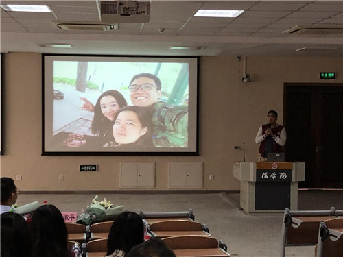 活动的第一个环节是老师致辞,作为2005级本科2班的班主任,党淑平老师回忆了当年和员工们一起经历的点点滴滴,追忆往昔岁月,并为员工们送上了美好的祝福和希冀。此后,任课老师进行了发言,葛云松教授作为当年合同法的任课教师,以幽默诙谐的语调对大家今后的学习工作进行了殷切的嘱托。王慧教授作为当年国际经济法的任课教师,与大家一起追忆起往昔的青春时光,引得现场笑声连连。最后,杨晓雷老师进行了发言,与大家一起重温了当年的青葱岁月,感慨万千。