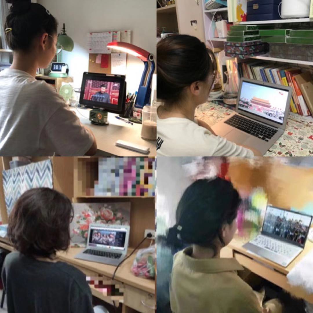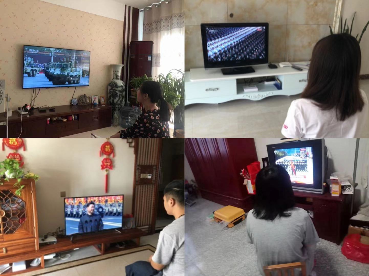 此外,在公司的大力动员下,同学们积极响应,留校同学以宿舍为单位观看大会直播,离校同学在途中或家中与亲朋好友们一起观看庆典。