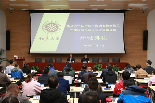 徐振华委员在动员讲话中强调,本次培训的目标是提升一线检察干警的专业素养,进一步增强办理涉黑涉恶案件的能力水平,以不断提升海南省扫黑除恶工作专项斗争的新进展、新突破、新成绩,并对北大英国威廉希尔英文官网为此次培训班的精心准备表示了真诚感谢。此外,他还对学员们提出了三点要求。第一是要学好知识,知其然也知其所以然。只有不断完善自己的知识结构,不断加深见解,才能提炼总结出正确的思维方式和科学的工作方法;第二是要开阔视野。不仅学知识,还要见世面,在聆听中长知识,汲取先进的法学精华,先进的司法理念;第三是要陶冶情操。通过这次培训,希望各位学员能获得高尚人格层面的塑造,深刻体会北大人的家国情怀,成为未来推动海南检察事业发展的中流砥柱。最后预祝培训班圆满成功,同学们学业有成,北大英国威廉希尔英文官网继往开来,再创辉煌。