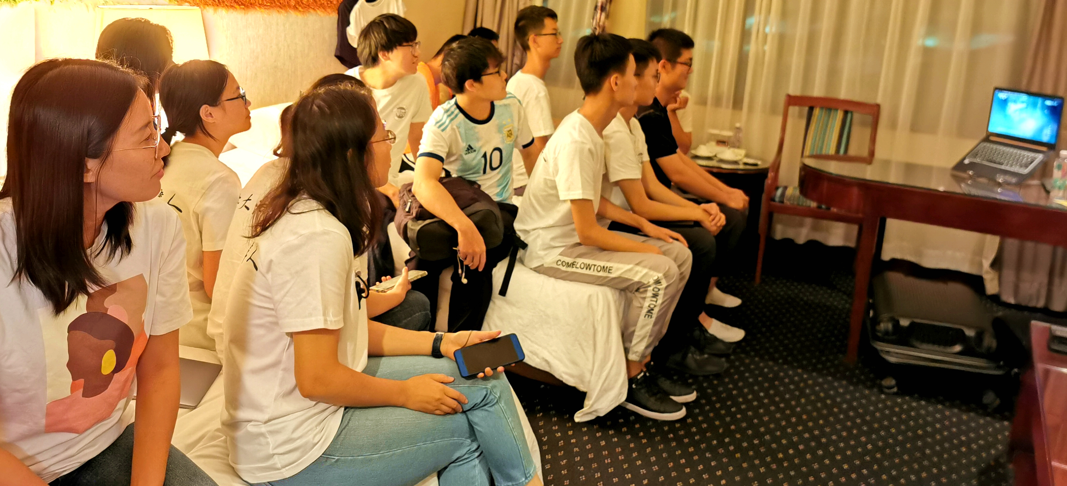 晚上,为了对深圳人民抗战历史有更深入的了解,同时为明天参观东江纵队纪念馆做准备,大家挤在酒店房间里围坐在电脑屏幕前观看央视纪录片《东江纵队》。虽然“条件艰苦”,但大家聚精会神,十分认真。观看完毕,大家都对东江纵队的英雄事迹有了更深入的认识,更被东江纵队不畏死亡英勇抗日保家卫国的精神所触动。东江纵队不愧是“中国抗战的中流砥柱”。相信明天实地参观东江纵队纪念馆,大家会对此有更深刻的认识。