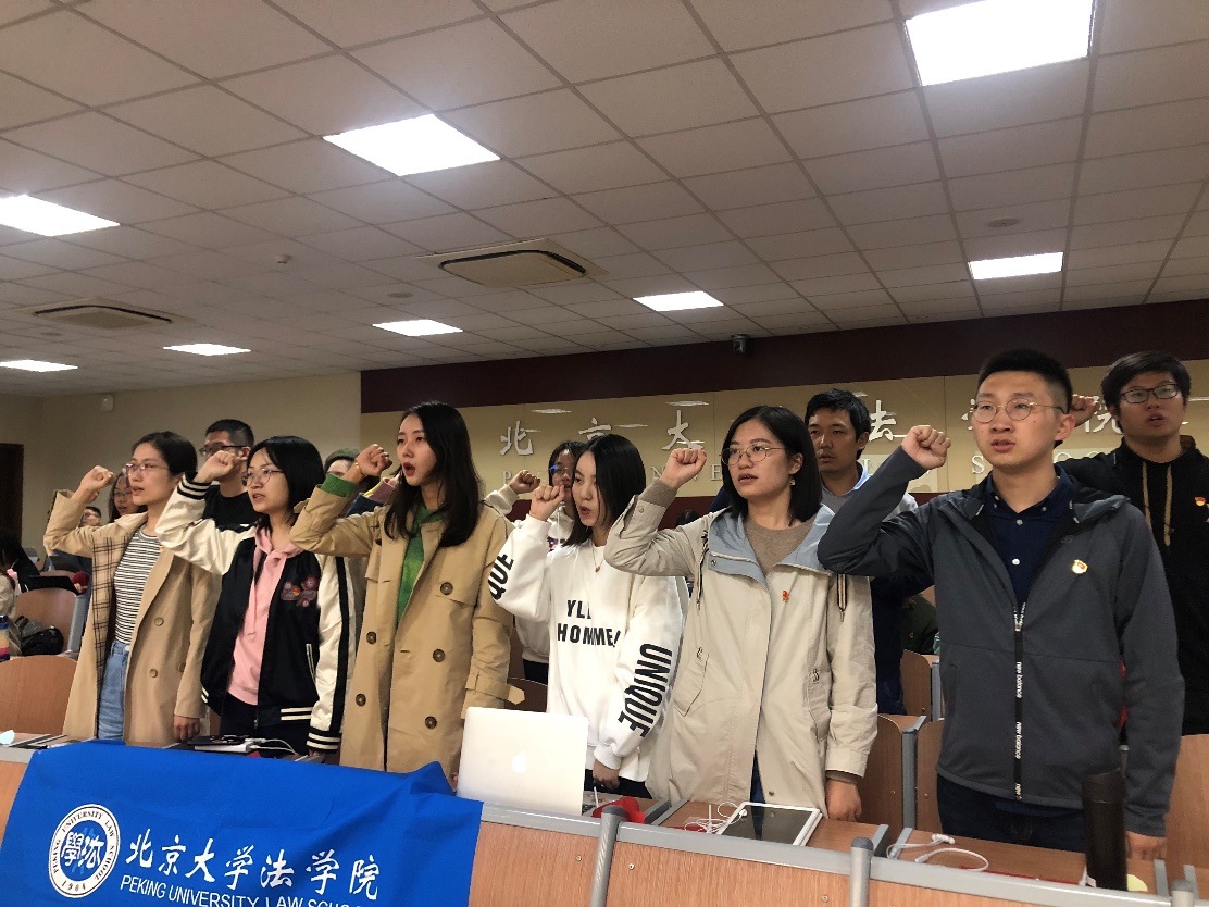 2019年10月28日晚,“青春告白祖国”党团日主题经验分享交流会在凯原楼B103会议室开展。会议活动内容包括激发爱国情感的奏唱国歌环节,回顾入党入团初心的佩戴党徽团徽、党员宣誓环节。