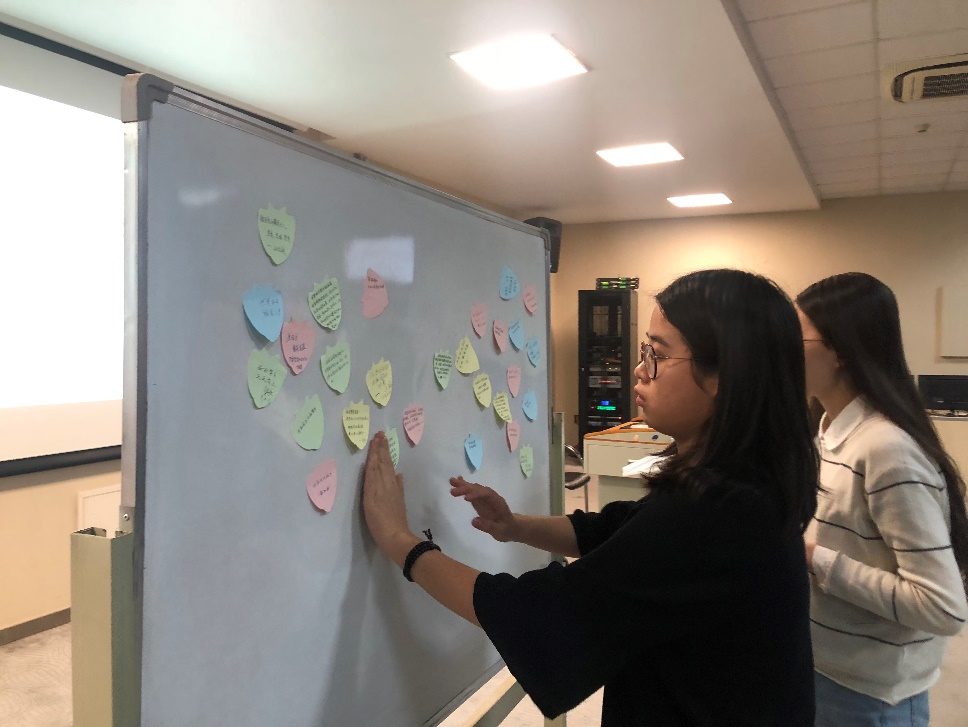 在“青春告白祖国”环节同学们正在粘贴便利贴