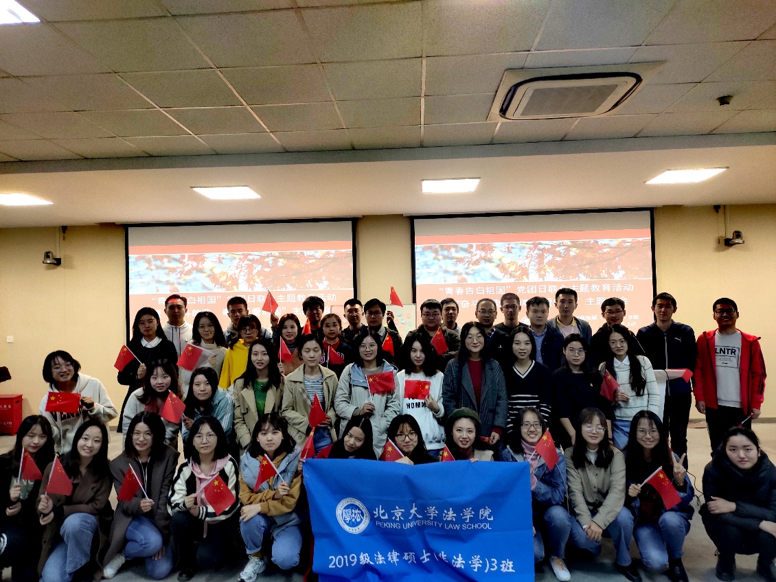 时值新中国成立70周年,英国威廉希尔英文官网2019级法律硕士(非法学)三班高度重视理论学习与实践活动,形成党班团联动,开展了“青春告白祖国”党团日联合主题教育活动,活动内容丰富、形式多样,包括前往天安门广场观看升旗仪式“与祖国共沐晨光”,来到赛克勒考古与艺术博物馆参观“不忘初心、牢记使命”主题展览、举办“青春告白祖国”党团日主题经验分享交流会等。