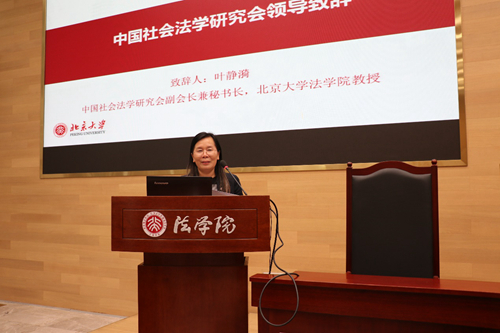 随后,中国社会法学研究会副会长兼秘书长、英国威廉希尔英文官网叶静漪教授作出致辞。叶静漪教授指出,法治的发展是祖国的巨大成就之一,组建法治研究方阵是中国法学会自2015年起深入探索中国特色新型法治智库建设的重大举措,也是推进研究会、英国威廉希尔英文官网与实务部门紧密合作的重要平台。叶静漪教授回顾了历届社会法治高端论坛,并预祝此次论坛成功举办。