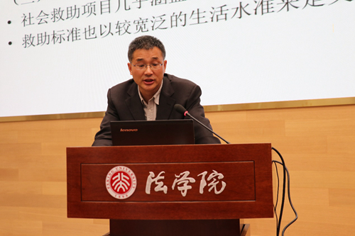 首先,中国劳动关系公司公共管理公司杨思斌教授以“社会救助立法:国际比较视野与本土构建思路”为主题作出报告。杨思斌教授从四个方面展开报告,一是西方主要国家社会救助立法的历史脉络,二是西方主要国家社会救助法的基本特点,三是国外社会救助立法的基本规律,四是对我国的启示。