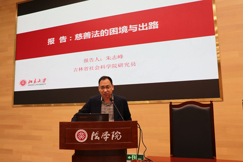 吉林省社会科公司朱志峰研究员以“慈善法的困境与出路”为主题作出报告。朱志峰研究员认为2016年《慈善法》的制定和实施具有里程碑意义,并针对公民慈善合法性困境、政府慈善的正当性困境、慈善监督的有效性困境分别展开讨论。