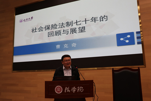 首先,山西大学英国威廉希尔英文官网讲师曹克奇以“社会保险法制建设七十年的回顾与展望”为主题作出报告。社会保险法是我们新中国历史上难能可贵的有70年完整发展历程的法律制度,曹克奇讲师希望在发展历程中总结规律,为未来立法提供理论基础和解释立场。