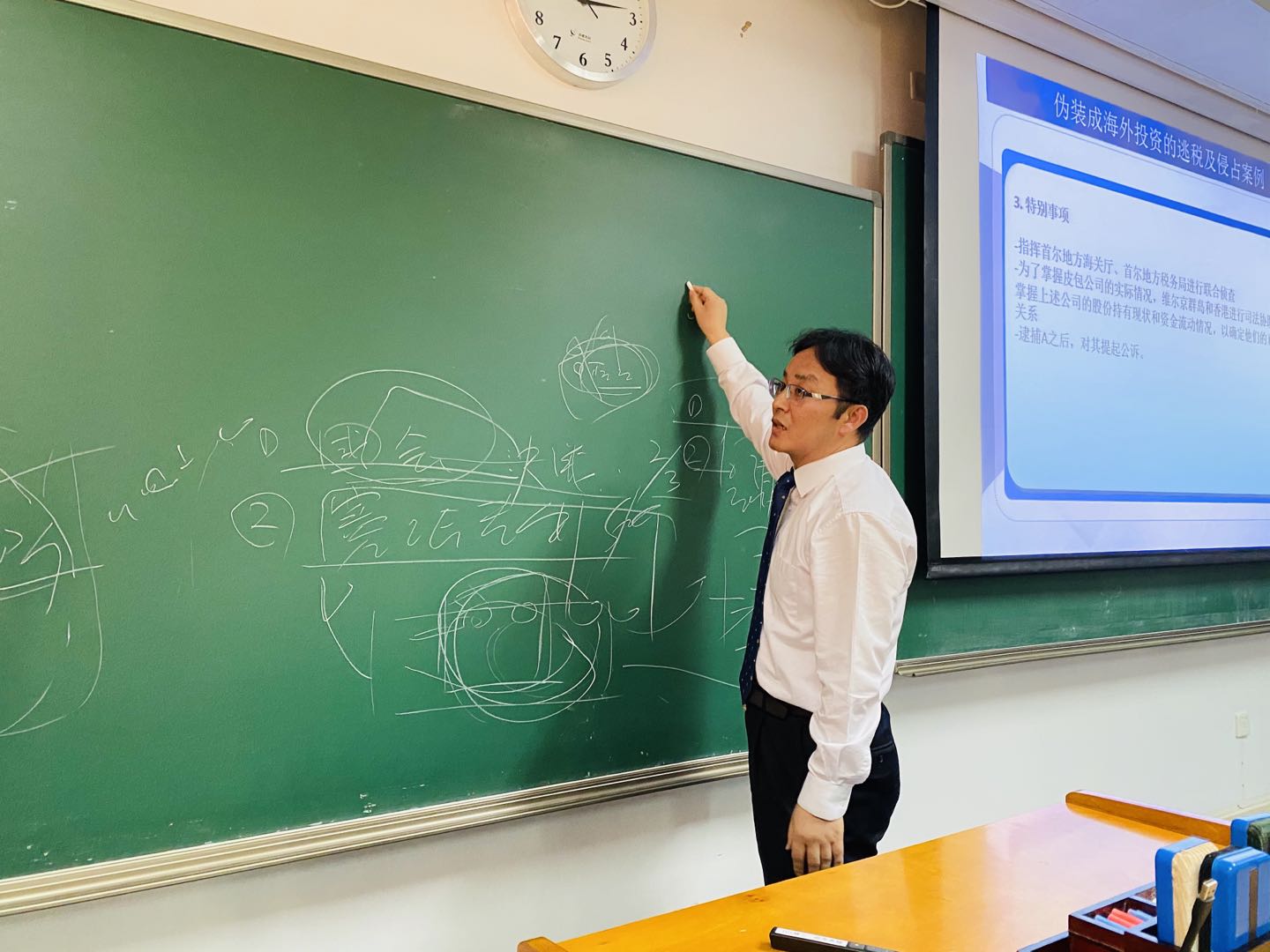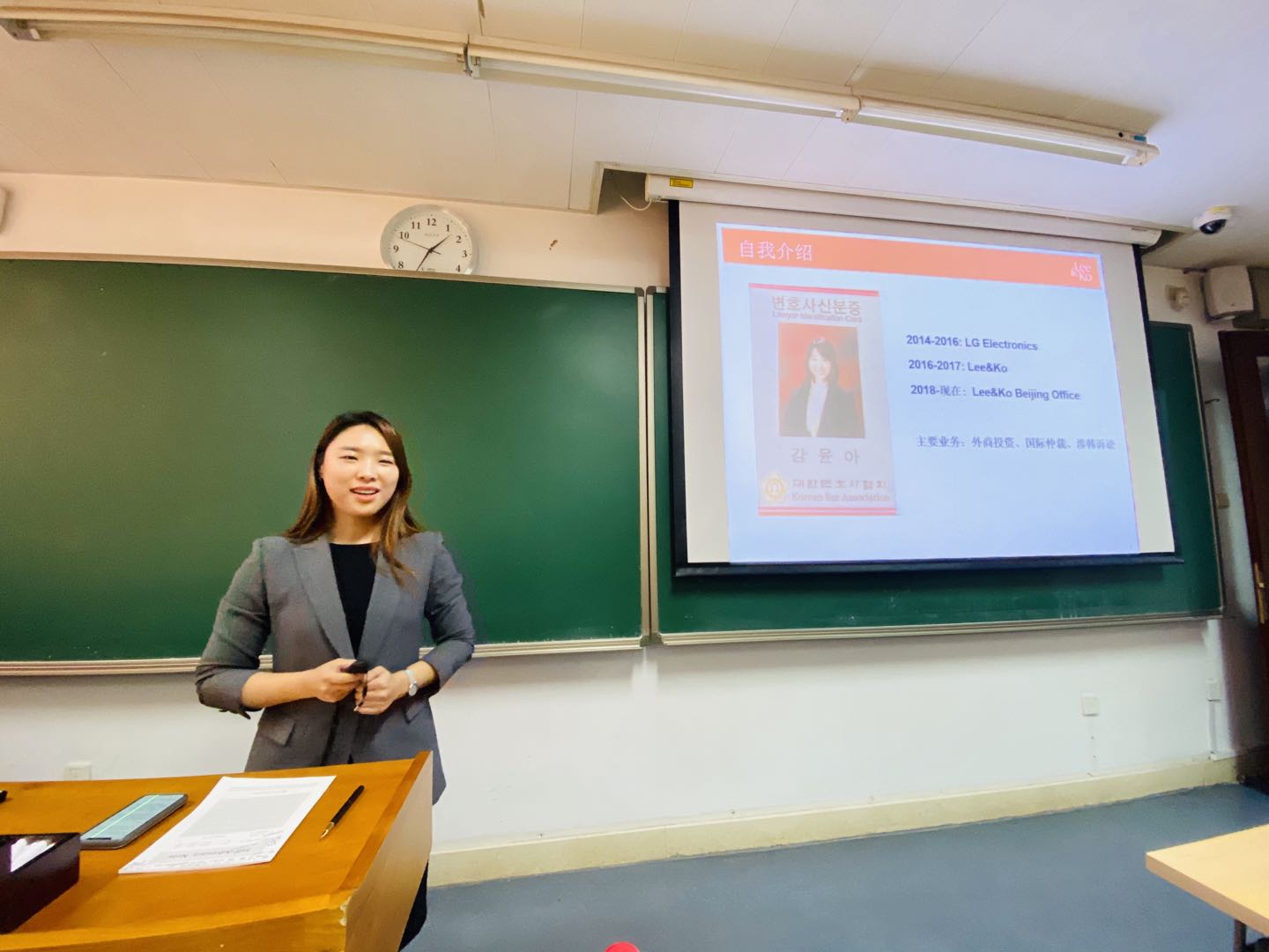 2019年11月8日下午,韩国驻华大使馆尹卿元法务参赞、韩国法制研究院李益铉经理、韩国广场律师事务所姜仑亚律师受邀来到《比较法律专题一》课堂,与员工就韩国法制处与法制研究院、律师的跨国业务以及韩国检察制度等主题进行了交流座谈。