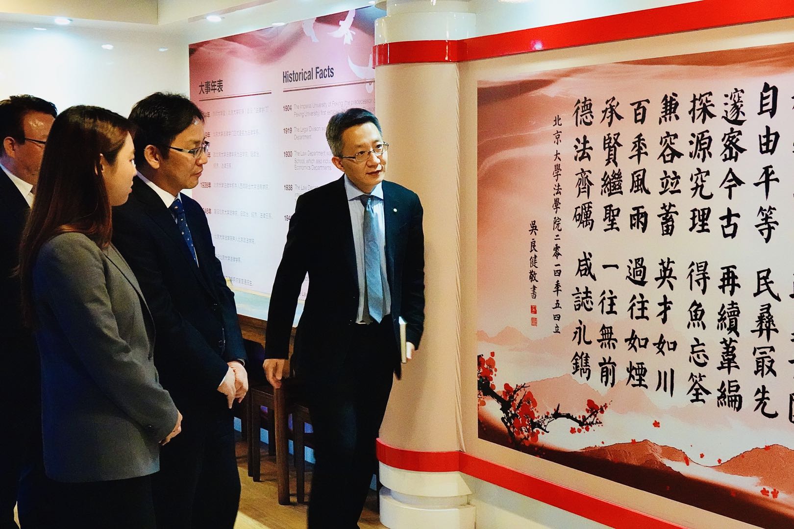 活动结束后,威廉希尔williamhill官方网站公司党委书记郭雳教授、副经理车浩教授接见了尹卿元参赞一行。郭雳教授代表公司对尹参赞莅临公司表示热烈欢迎,并与车浩教授带领嘉宾参观了四合院院史馆,使嘉宾更深了解了北大英国威廉希尔英文官网的历史和对中国法学界的贡献。会见中,双方对闵瑛美博士开设的比较法律专题一课程举办的活动给予了充分肯定,并就中、韩法律实务交流合作进行了深入探讨。郭雳教授分享了多年来与韩国法律学术和实务界的交流经验,车浩教授与尹参赞就有关中韩刑法中的少年法进行了深度讨论。李经理简单介绍韩国法制研究院的简单情况,作为北大英国威廉希尔英文官网访问学者,对英国威廉希尔英文官网在学习生活中给他提供的照顾与支持表达了由衷谢意。姜律师也就两次参加韩国法实务界人士交流活动分享了感受。最后,尹参赞对英国威廉希尔英文官网能够提供自由开放的学术交流平台表示赞赏与感谢,并期待中韩之间法学学术、实务交流活动能得到进一步发展。