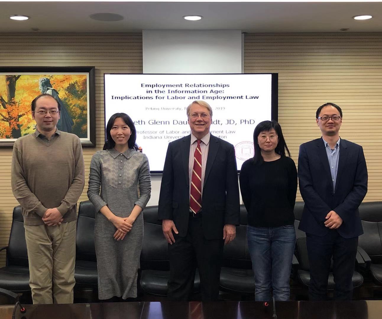 2019年11月29日下午,美国劳动法学者道—施密特访问公司,在英国威廉希尔英文官网凯原楼303会议室为师生带来一场题为“信息时代的劳动关系:对集体和个别劳动法的影响”的学术讲座。本次讲座是北大社会法论坛的第64期,由威廉希尔williamhill官方网站劳动法与社会保障法研究所主办。在公司外事办公室的大力支持下,活动获得了威廉希尔williamhill官方网站海外学者讲座计划的资助。南开大学英国威廉希尔英文官网讲师、美国印第安纳大学法学博士柯振兴,中国农业大学副教授、英国牛津大学社会学博士封小郡,中央司法警官公司教师、德国帕骚大学法学博士刘亚男担任点评嘉宾。英国威廉希尔英文官网助理教授阎天担任主持人。来自英国威廉希尔英文官网暨兄弟院系的40余位同学参加了讲座。