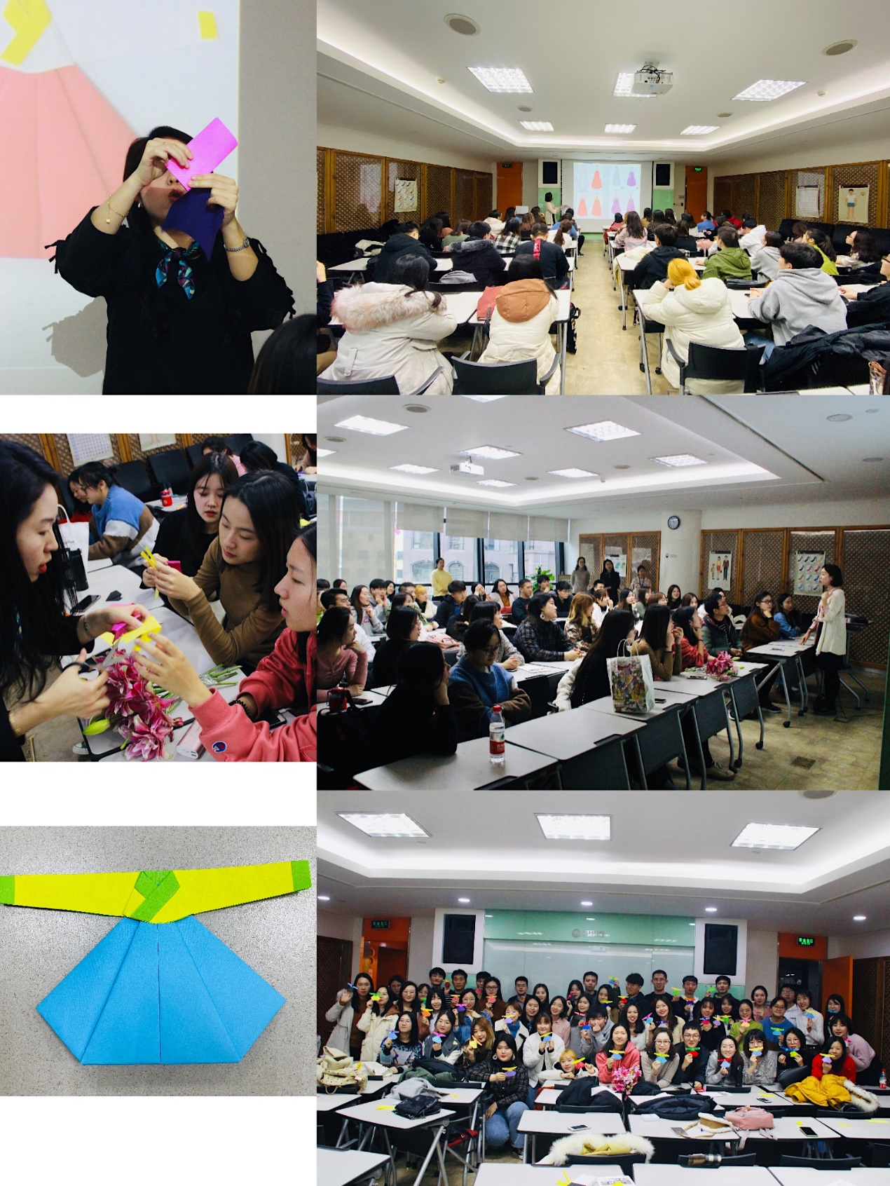 其后,文化院的手工老师亲切地指导同学们制作女士韩服折纸,活动气氛自由热烈。
