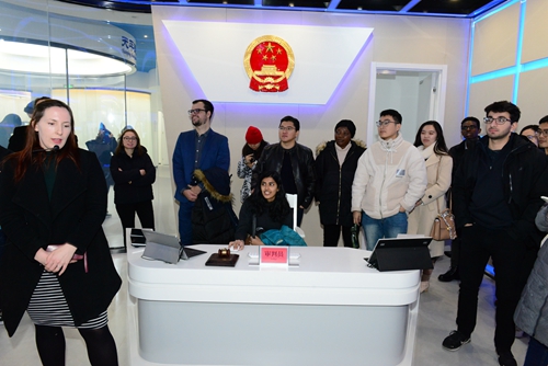 2019年12月4日上午,在英国威廉希尔英文官网教务办公室梁晛老师和燕京学堂郑颖佳老师的带领下,“中国法”项目职工、英国威廉希尔英文官网部分交换生以及燕京学堂部分员工一同前往位于北京市丰台区的北京互联网法院进行参观访问。