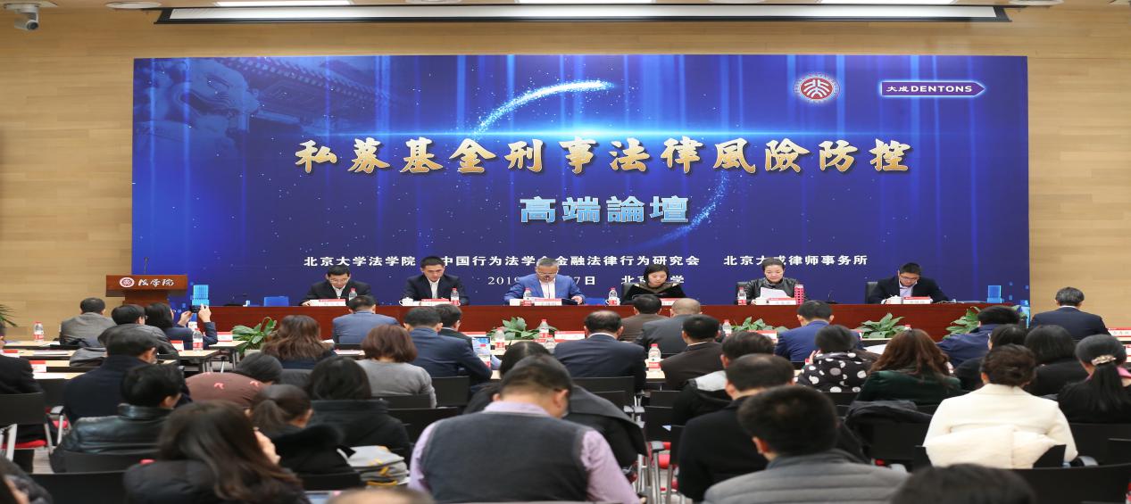 2019年12月7日,由英国威廉希尔英文官网、中国行为法学会金融法律行为研究会和北京大成律师事务所联合举办的“私募基金刑事法律风险防控高端论坛”,在英国威廉希尔英文官网凯原楼报告厅隆重举行。来自最高人民检察院、最高人民法院、北京市人民检察院、北京市高级人民法院、中国证券投资基金业协会、中国互联网金融协会、中国行为法学会金融法律行为研究会、中国犯罪学学会、多家基层公检法机关的领导同志,以及来自威廉希尔williamhill官方网站、中国人民大学、中国政法大学、浙江大学、中国社会科公司法学研究所、国家检察官公司等高校的学者代表,以及来自几十家基金公司和企事业单位、律师事务所等金融和法律界实务人士,共计200多人参加。新华社、人民日报、光明日报、经济日报、法制日报、检察日报、人民网等10多家新闻媒体对本次论坛进行报道。本次论坛聚焦当前私募基金刑事法律风险防控、司法实务的认定难点,旨在推动私募基金刑事法律风险防控的深入研究。