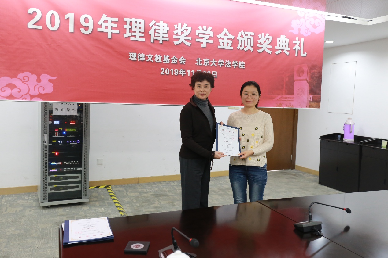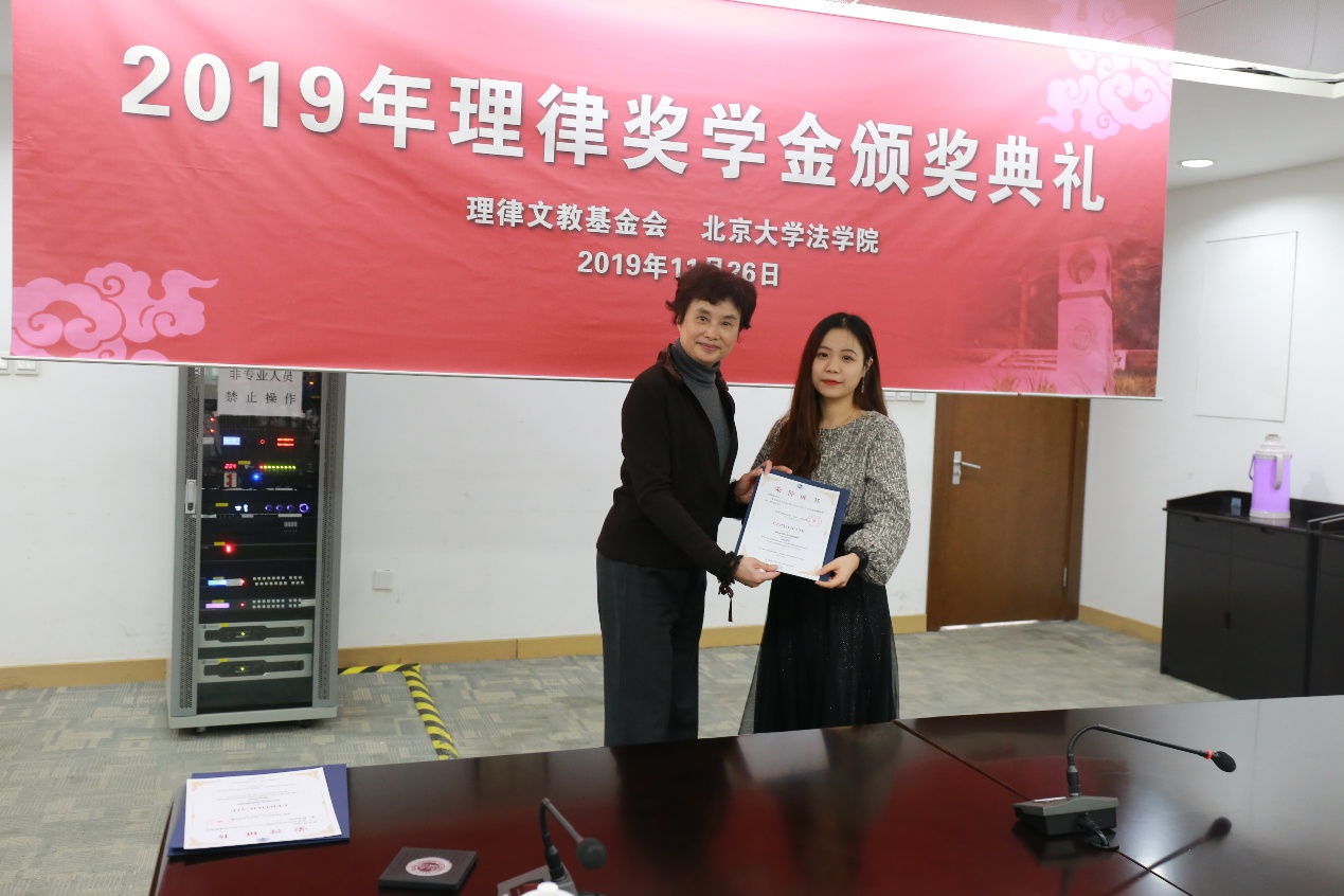 随后,理律文教基金会执行长李永芬女士为2017级法律硕士廖红霞、2018级法律硕士刘祎佳等获奖员工颁奖并合影留念。获奖同学分别发表获奖感言,表达了自己法律人学习的经历与感悟,并对理律文教基金会给予学子的鼓励与支持表示感谢。