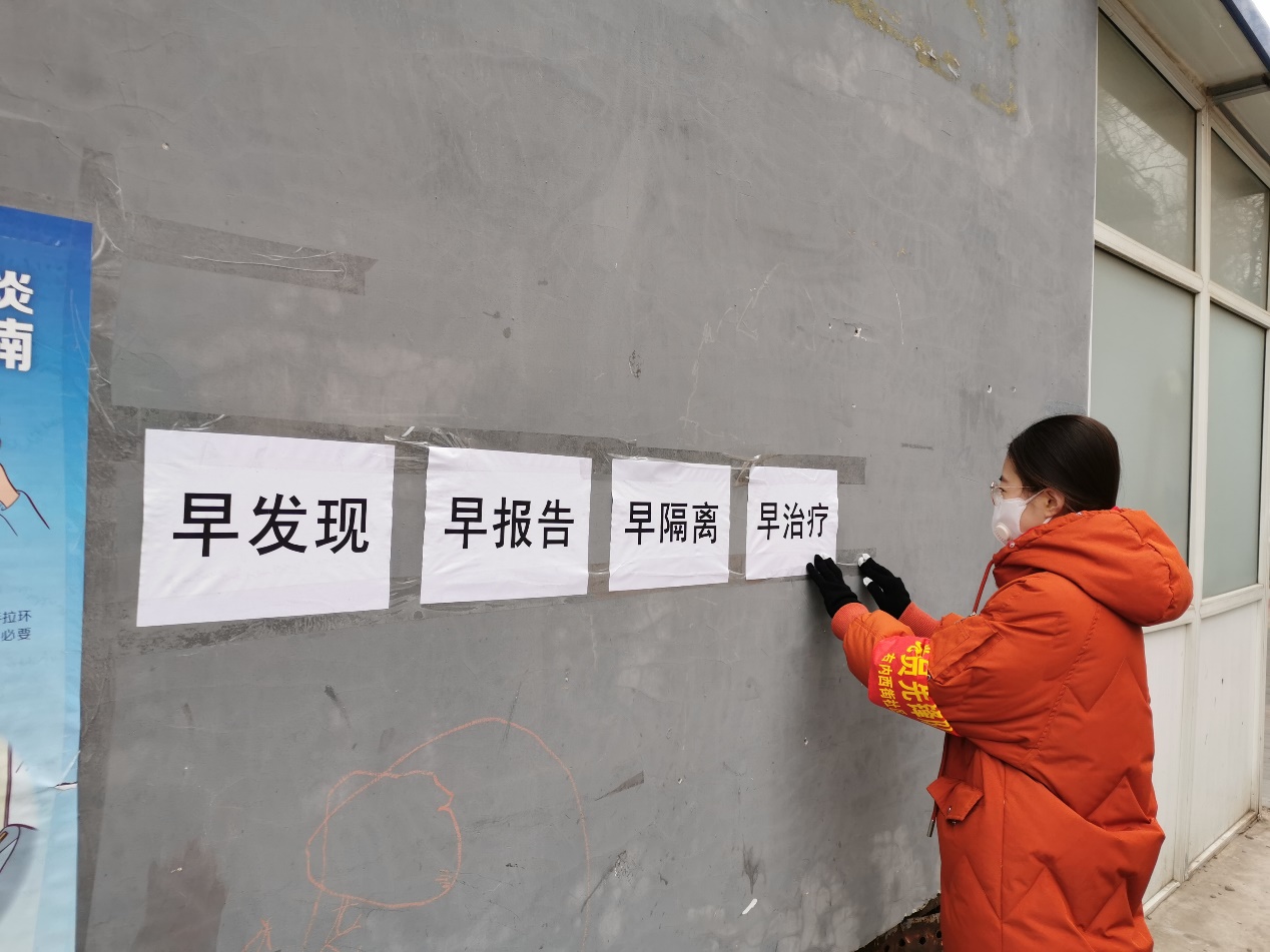 李萌所在的社区中,老年人和流动人口很多,据社区工作者说,二月以来就有近五百户租户陆续返京。因此,李萌和其他志愿者们除了完成日常人员登记和检查,同时还要对自己岗位周围的公共接触设施进行消杀,比如健身器材、垃圾桶等。抗疫月余,一些居民开始放松警惕,出门不戴口罩,甚至聚集下棋,热心又耐心的李萌在值班期间还承担起了做大爷大妈们思想工作的任务。协助社区工作人员重新张贴防疫提示标语提示,宣传防护常识也成为李萌工作中的常态,在她和其他志愿者们的宣传和示范下,社区居民的防护认识有了明显的提高,越来越多的人主动积极配合社区防疫工作。