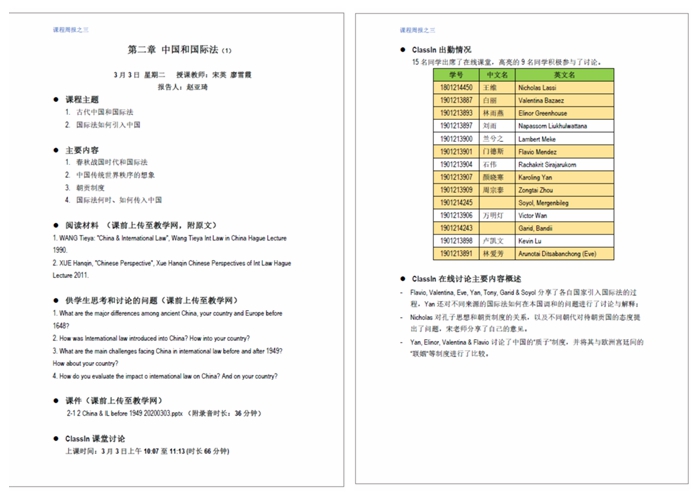 通过前三次课程的实际摸索总结,宋英老师根据课前预习、课中研讨、课后交流三步骤为课堂设计了一套“三结合”的教学方法。首先,依托教学网上传课程资料、课程视频及相关辅助阅读材料让员工提前进行课前预习;其次,在实际课表上课时间通过Classin对课程内容进行在线研讨已了解员工对课程内容的接受程度;最后,通过微信和电子邮件等方式与员工进行共通问题的解答交流或单独一对一的答疑解惑。宋英老师认为三种方式缺一不可,相结合之后的教学方法符合本课堂的员工特点,满足本课堂的员工需求,同时也可以让因时差远在海外的同学能够根据自身实际情况支配自己的学习时间。截止3月3日,前三周课程已结束。在完成理论授课部分的同时,课程的研讨环节也是进行地如火如荼。大部分员工克服时差带来的生理困扰,积极参与讨论。整体来说,现有教学方法的实践效果反馈良好。