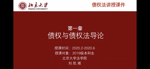 刘凯湘老师结合自己本学期教授本科生《债权法》的心路历程,展现了教师在网络教学下的教风学风。该课程为本科生的专业必修课,主要授课对象为2019级本科生及部分跨院系选课的员工,本学期共选课237人。