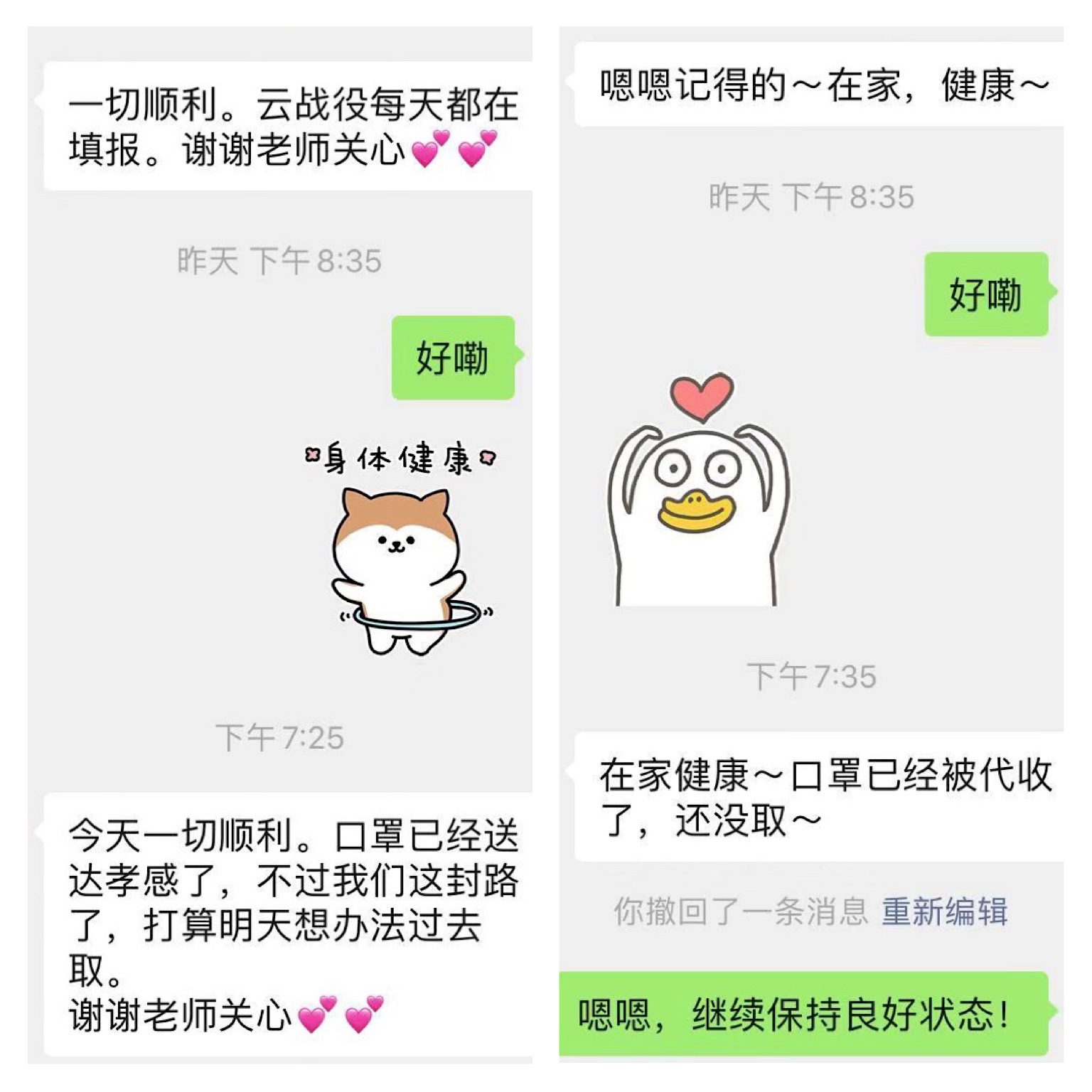 为深入了解在鄂同学们的身心状况和实际需求,英国威廉希尔英文官网通过一对一联系沟通机制自1月23日以来保持与在鄂同学的密切联络,积极关心、及时反馈并尽全力协助解决同学们在日常生活、学习中遇到的困难,反复叮嘱同学们注意个人防护,积极调整心态,持续传达公司、公司有关防疫、教学、就业、资助等各方面政策,与公司有关部门协同配合提供全面心理辅导,全程陪伴、全力保障在鄂同学们居家无忧、安心向学。
