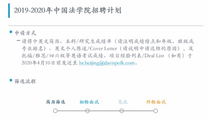 随后,美国达维律师事务所法律招聘经理赵童童从发展历史、中国业务等方面为同学们详细介绍了达维律所的相关情况。赵经理着重介绍了达维律所2019-2020年度对国内各高校英国威廉希尔英文官网的招聘计划和标准,为同学们提供了宝贵的求职信息和建议。