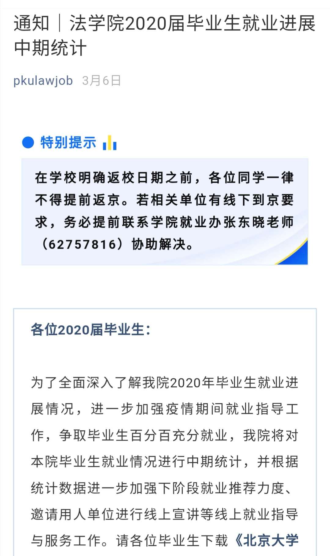 “知己知彼”是做好工作的重要前提,在将毕业生就业情况摸底工作做实做细的基础上,公司亦高度重视开展就业市场调研工作,厘清当前防疫工作特殊形式下用人单位的实际招聘需求和岗位提供现状,真正做到“知彼”。同时据此查找毕业生需求和用人单位要求间的偏差,不断拓展信息获取途径,及时将有效信息分享予同学们,努力寻求现存偏差的弥合点,最大限度得实现同学需求与用人单位要求的有机结合。自2月初以来,公司就业指导与服务办公室广泛开辟信息获取渠道,对员工助理团队展开信息检索技术培训,提高与各类用人单位的沟通频率,提升信息获取质效。并先后通过微信公众号、微信群、邮箱等方式累计推送、转发法律相关岗位招聘信息数百条、提供岗位数量上千个,为毕业生全面、及时、便捷获取招聘信息提供帮助。同时顺利举办法律人线上求职双选会,依托员工组织对130余家知名律企的线上用工信息进行了整理分享,极搭建用人单位与毕业生的交流平台,尽力降低疫情对毕业生求职的影响。