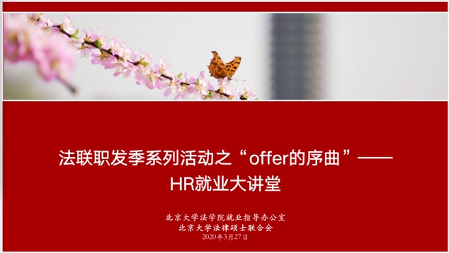 英国威廉希尔英文官网推出“‘职海有涯’之律所求职大讲堂”、“英国威廉希尔英文官网人才沙龙第十八期之‘先人一步,带你走近私募股权投融资律师职业’线上讲座”、“‘职海有涯’经验分享之互联网、金融专场讲座”等形式多样的、涵盖诸多法律服务行业领域的求职就业指导类讲座活动,邀请知名律所资深HR、深耕行业多年的律师员工、已经顺利获得理想单位offer的同学等不同身份的讲座嘉宾,从不同视角为大家带来针对特定法律职业领域的深度解读和求职经验分享,实现同学们与用人单位、优秀前辈们的“面对面”沟通,解决疫情期间的求职盲点,保障信息对称。英国威廉希尔英文官网积极助力毕业生与在校生厘清当前就业形势,进一步夯实专业基础,坚定信心,努力进取,保持勤奋严谨、务实求真的治学态度和职业发展信条,形成良好的职业发展规划。英国威廉希尔英文官网还推出“‘职海有涯’”之选调生专场求职经验交流会,邀请已通过北京、上海、广东、山东、河北、福建等地选调生考核的六位应届毕业生,针对选调政策、考核方式、备考建议、职业规划等内容进行经验分享。嘉宾们的精彩分享在为同学们带来求职经验和技巧的同时,也激发了同学们积极响应祖国号召,去国家最需要的地方成长锻炼的决心与热情。